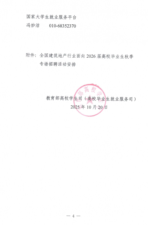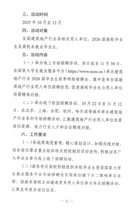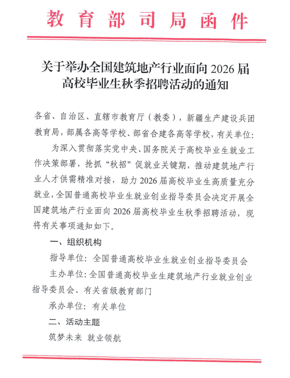 转发《关于举办全国建筑地产行业面向2026届高校毕业生秋季招聘活动的通知》