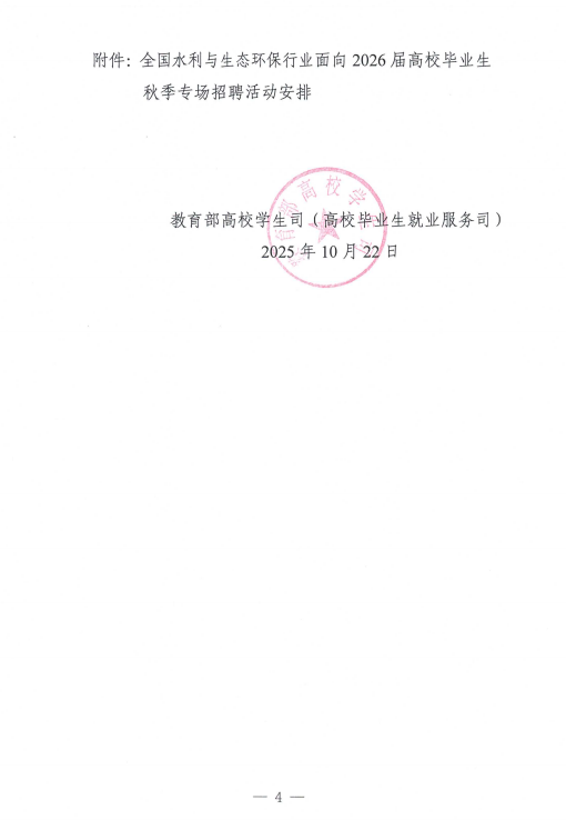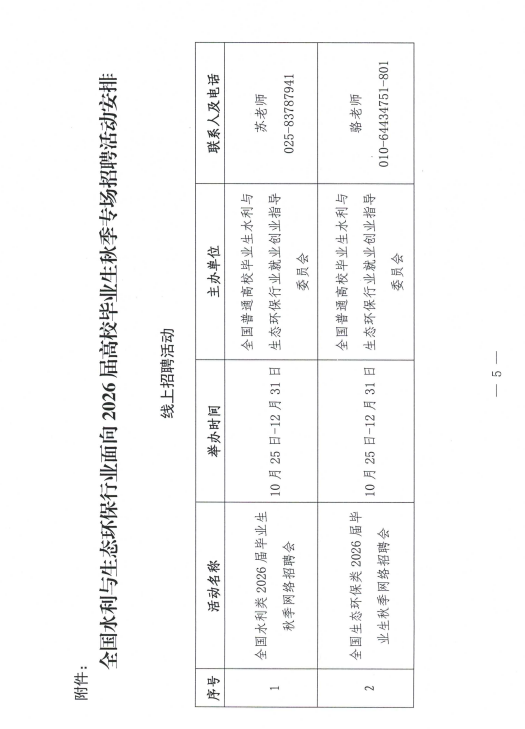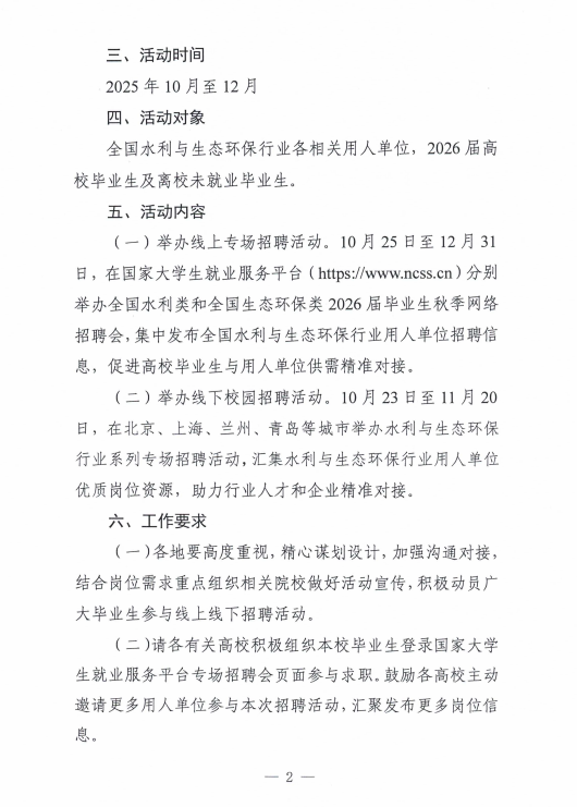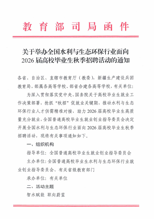 转发《关于举办全国水利与生态环保行业面向2026届高校毕业生秋季招聘活动的通知》