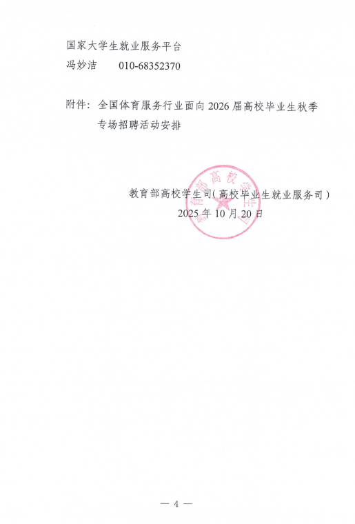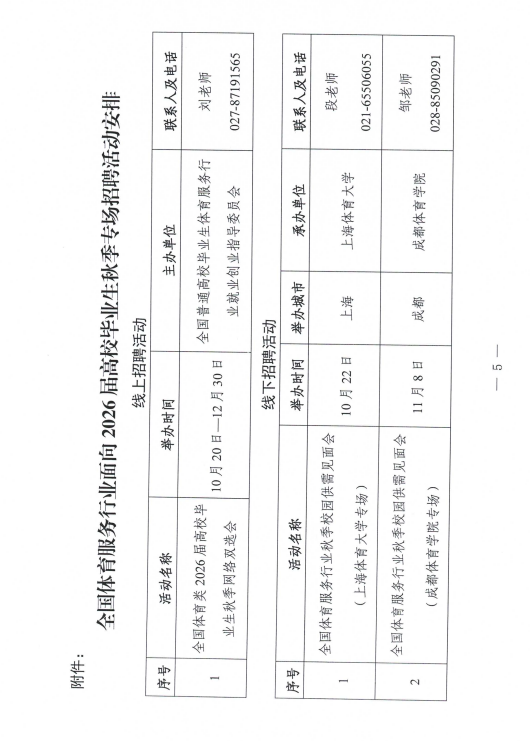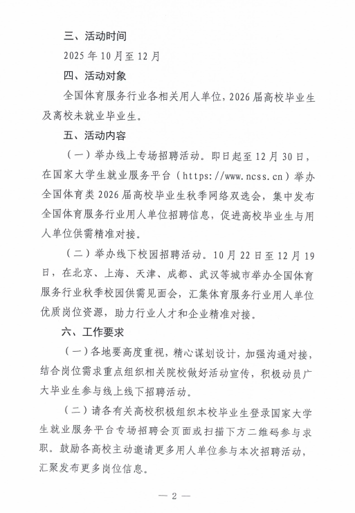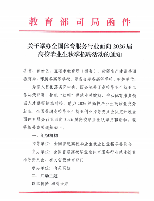 转发《关于举办全国体育服务行业面向2026届高校毕业生秋季招聘活动的通知》